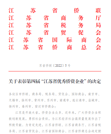 2022年2月,由江苏省侨联、江苏省商务厅、江苏省税务局、江苏省贸促会、江苏省国际商会和江苏省侨商总等共同评选的——第四届“江苏省优秀侨资企业”名单公布,博雅干细胞与多个江苏省优秀侨资企业共同入选。