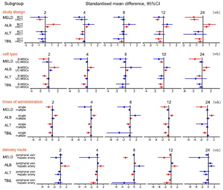 与对照组相比,间充质干细胞治疗后显著改善了血清总胆红素和终末期肝病评分模型等临床试验指标。这些结果证明了同种异体间充质干细胞移植治疗慢加急性肝衰竭的有效性。