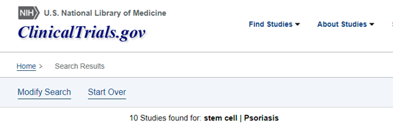 截至目前,在美国国立卫生研究院的临床试验注册库clinicaltrials.gov网站上注册的有关干细胞治疗银屑病的临床研究有多项,其中最常应用的干细胞类型为间充质干细胞。