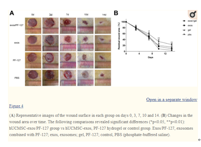 [9] Yang J, Chen Z, Pan D, Li H, Shen J. Umbilical Cord-Derived Mesenchymal Stem Cell-Derived Exosomes Combined Pluronic F127 Hydrogel Promote Chronic Diabetic Wound Healing and Complete Skin Regeneration. Int J Nanomedicine. 2020 Aug 11;15:5911-5926.
