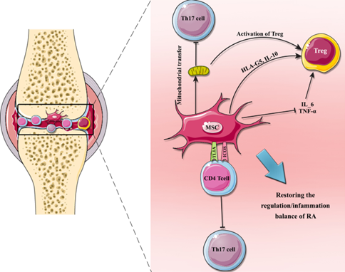 2019年的研究 [4]报告了使用自体间充质干细胞治疗难治性RA患者,所有9名参与者接受静脉注射1 × 10^6个自体MSC/kg的治疗后,RA的症状均有所改善。