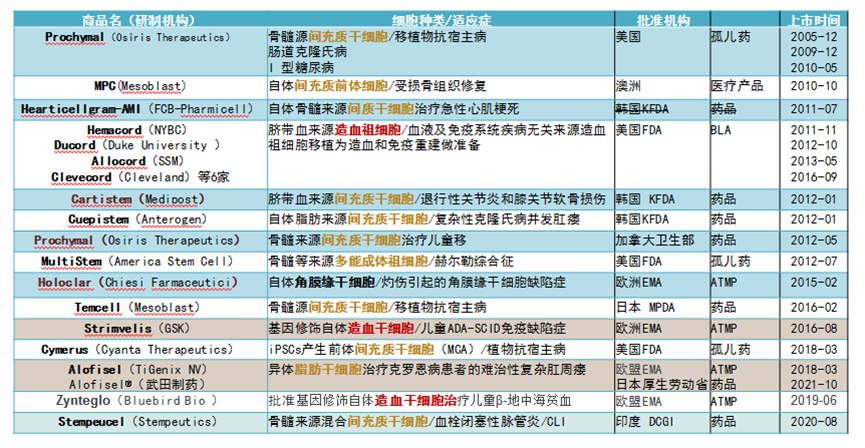 通过大量的临床研究,目前已经全球获批上市的干细胞“药丸”——干细胞产品有近20款,包含多种适应症。