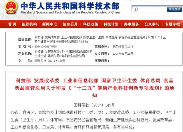 六部委联合发布《“十三五”卫生与健康科技创新专项规划》